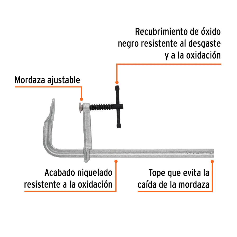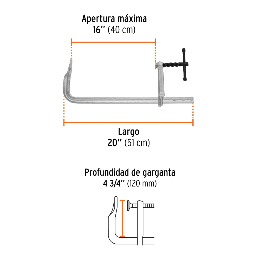 Su apertura máxima de 16″ (40 cm) y una profundidad de garganta de 4 3/4″ (120 mm) te brindan la libertad de trabajar con piezas de gran tamaño y diferentes espesores. Es la aliada perfecta para sujetar, ensamblar o unir materiales con absoluta firmeza.