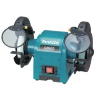 La Pulidora de Banco Makita GB602 ofrece estabilidad y precisión para afilado y pulido con su motor de 250W y ruedas de 150mm.