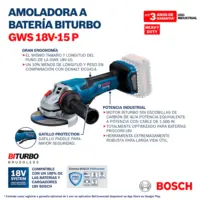 Potencia y movilidad se unen en la Pulidora Inalámbrica Bosch GWS 18V-15 P. Con un motor Brushless de 18V y un rendimiento equivalente a 1500W, esta herramienta ofrece cortes rápidos y precisos en metal, concreto y más. Sin cables, sin limitaciones.