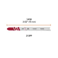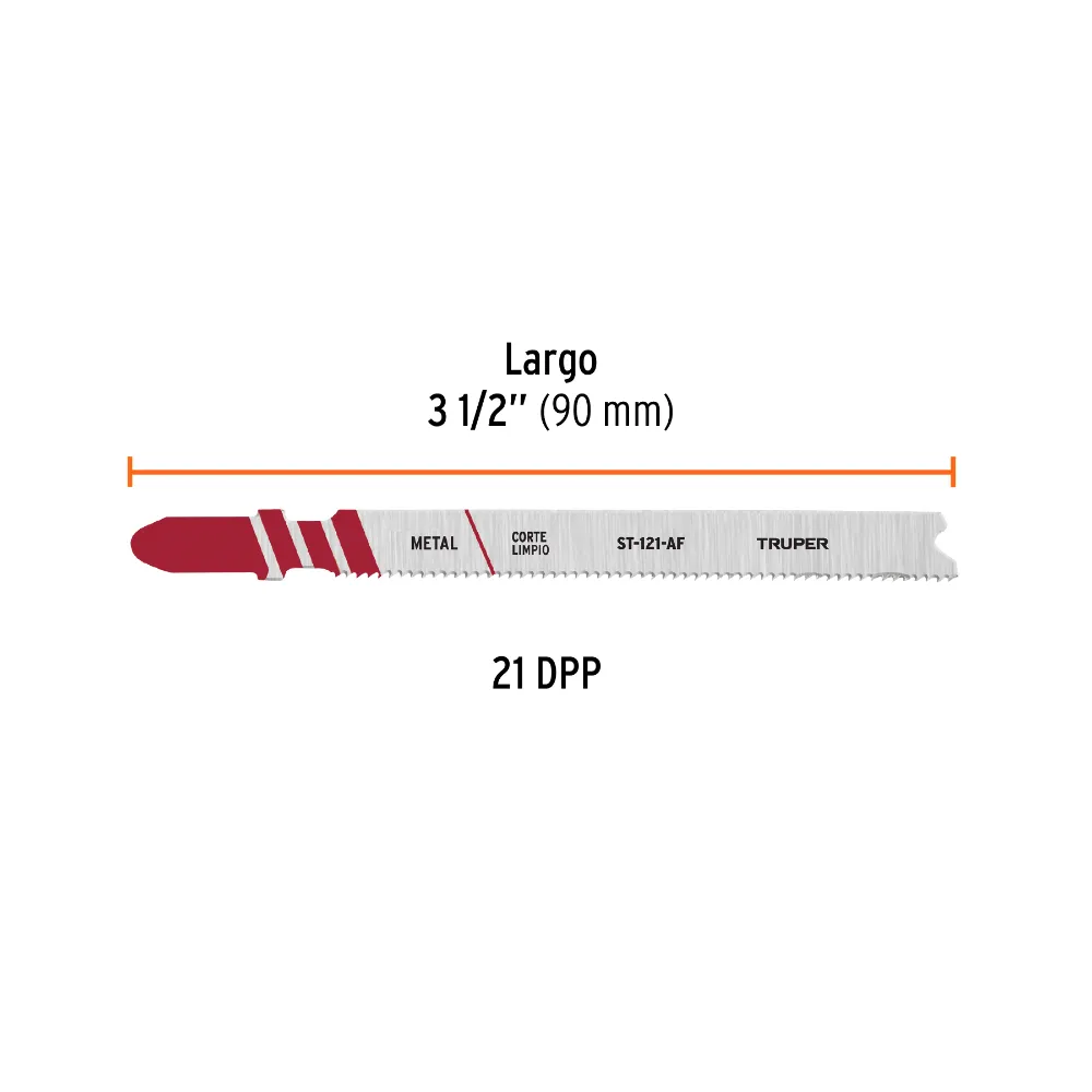 Fabricadas en acero de alta resistencia, garantizan durabilidad y un corte preciso en cada uso. Su zanco tipo “T” ofrece compatibilidad universal con una amplia gama de sierras caladoras del mercado, incluyendo modelos Truper® y Pretul®. Con 21 dientes por pulgada de tipo fresado ondulado, son perfectas para cortar materiales metálicos con espesores entre 1 mm y 3 mm.