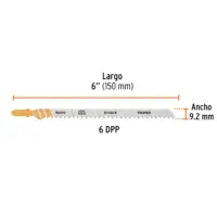 Fabricadas en acero al carbono, garantizan una gran durabilidad y resistencia al desgaste. Su diseño con zanco tipo “T” asegura una fijación segura y estable en sierras caladoras, eliminando vibraciones y permitiendo un avance suave. Con 6 dientes por pulgada (TPI) afilados y triscados, ofrecen un corte rápido y eficiente en maderas de diferentes grosores, desde 5 mm hasta 100 mm.