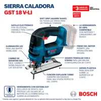 La Sierra Caladora Bosch GST 18V-LI es la herramienta perfecta para cortes precisos en madera, metal y plástico. Su diseño compacto y motor potente de 18V la convierten en la opción ideal para profesionales que buscan versatilidad y alto rendimiento.