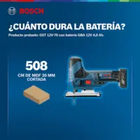 La Sierra Caladora Bosch GST 12V-70 es la solución perfecta para cortes precisos y versátiles en madera, plásticos y metales. Con su motor Brushless, ofrece el doble de vida útil y mayor autonomía, eliminando la necesidad de cables y brindando libertad de movimiento en cualquier entorno de trabajo.