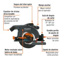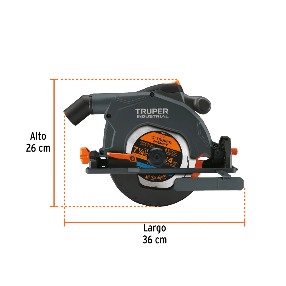 • Incluye un disco TRUPER EXPERT de 7 1/4″ con 24 dientes de carburo de tungsteno para mayor durabilidad y cortes limpios.