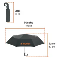 Con un diámetro de 100 cm, ofrece amplia cobertura, y su largo de 63 cm garantiza un tamaño compacto cuando está cerrada. Es ideal para aquellos que buscan una sombrilla confiable y fácil de usar.