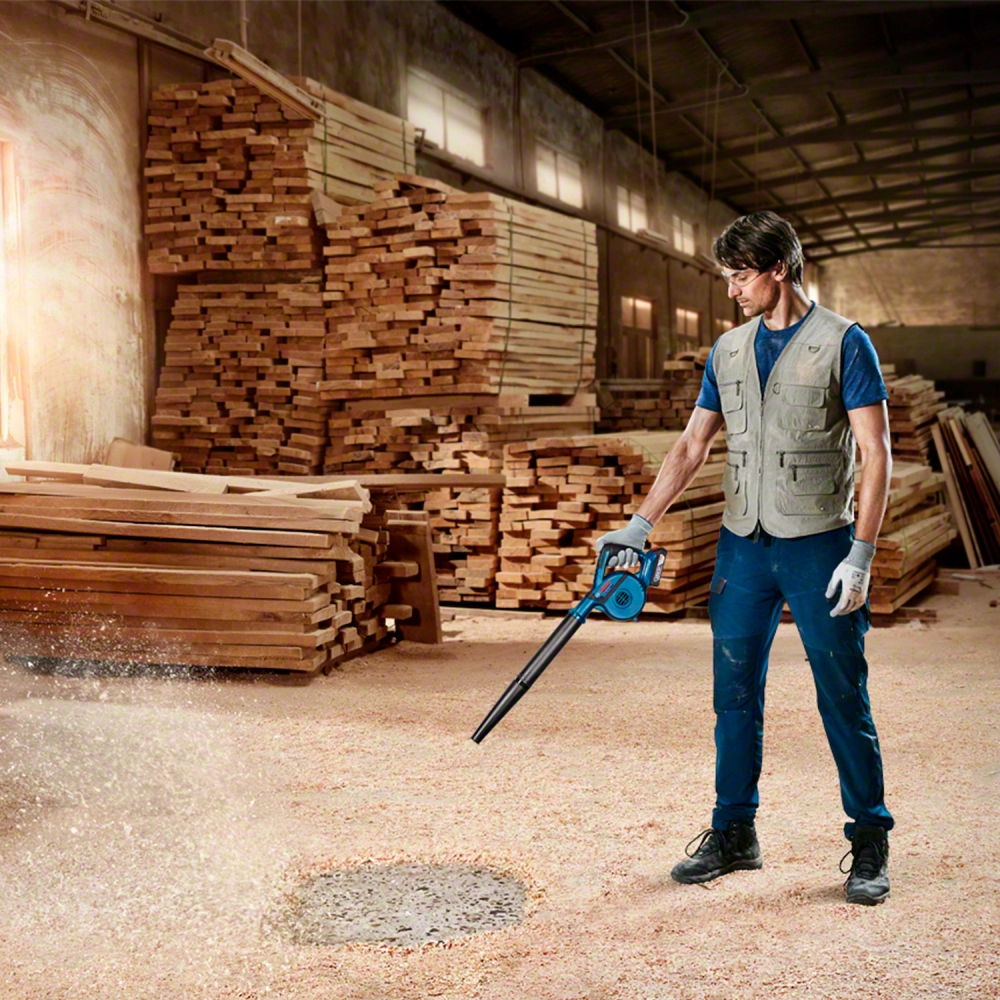 La Sopladora Profesional Bosch GBL 18V-120 redefine radicalmente los estándares de limpieza profesional gracias a su impresionante velocidad de aire de 270 km/h, que elimina residuos, virutas y polvo en segundos. Diseñada específicamente para carpinteros, constructores, técnicos de mantenimiento y profesionales exigentes, esta herramienta garantiza una limpieza profunda y eficiente sin la molestia de los cables, ofreciendo una movilidad absoluta.