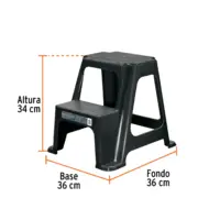 | Características | Fabricado en polipropileno de una sola pieza. Diseño compacto. Peldaños y gomas antiderrapantes para mayor seguridad. Apilable y fácil de almacenar. |